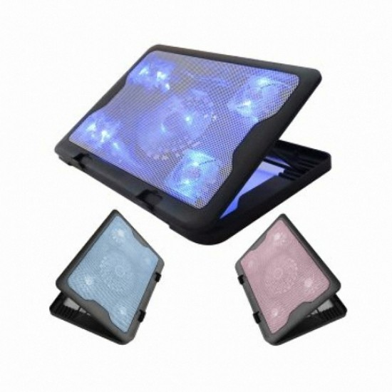 [분류/종류] / 받침대/쿨러 / 쿨링패드 / [호환크기] / 17인치대 / [주요스펙] / 조절 기능:각도 / 메탈 외 포함 / USB 1포트 / 미끄럼방지 / LED조명 / [쿨링성능] / 쿨링팬 5개 / 140mm 1EA, 60mm 4EA / 2800±10 RPM / 19 dBA / [크기/무게] / 380mm / 280mm / 30mm / 1kg